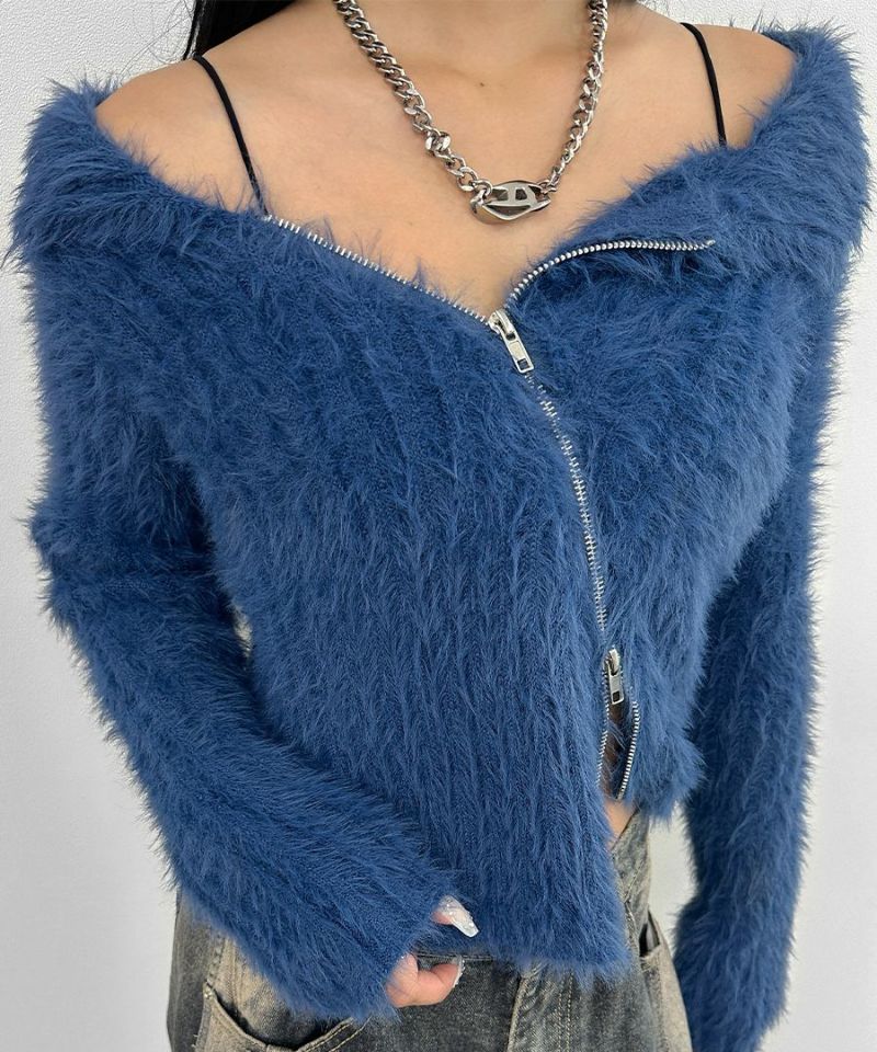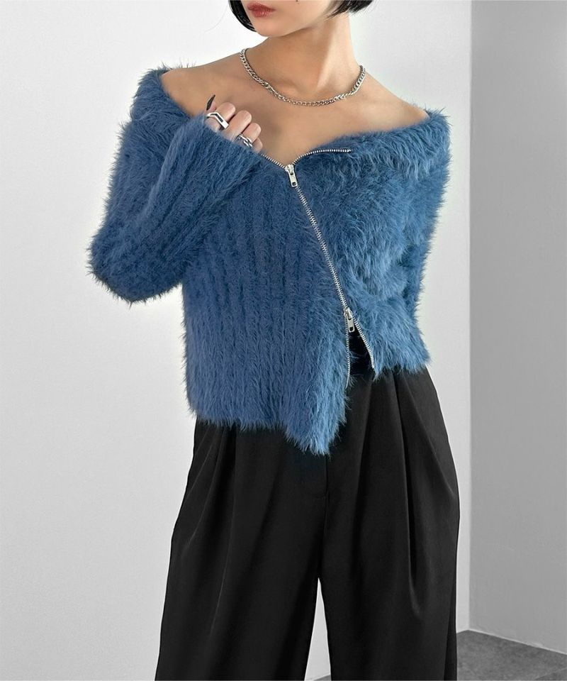 アシメジップオフショルシャギーニット