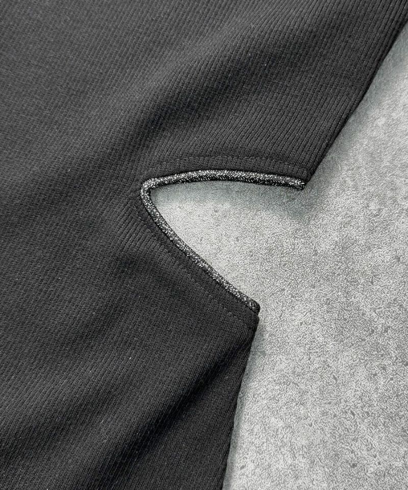 伸縮性が高く、程良い厚みのリブ素材を使用。