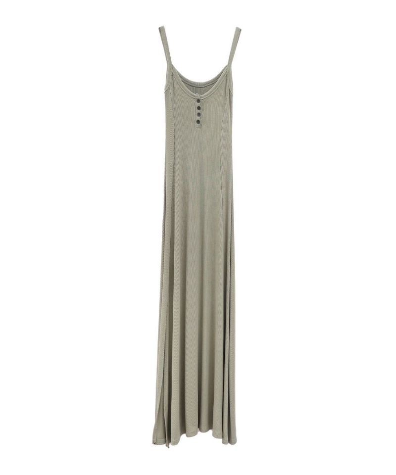 デイリー使いしやすいシンプルなワンピース。 すっきりとしたセミフレアシルエットが モードな印象を与えてくれる1枚です。 フロントスリットは、歩きやすいだけではなく こなれ感を演出してくれます。