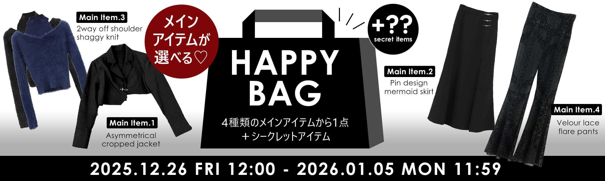 他の画像を見る 【数量限定】 HAPPY BAG 3 / 2way off shoulder shaggy knit NEW ¥ 9,000 税込 販売期間 2025/12/26 12:00 〜 2026/01/05 11:59 カートに入れる お気に入りに登録する