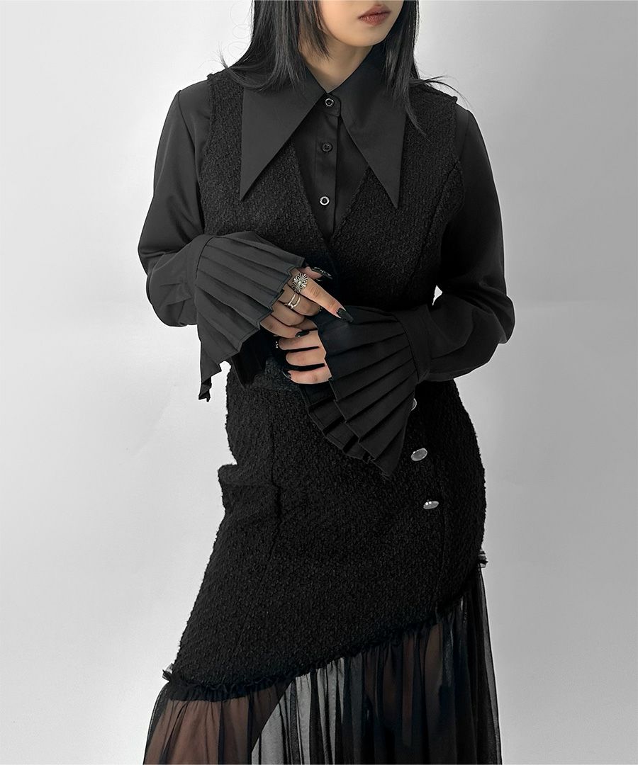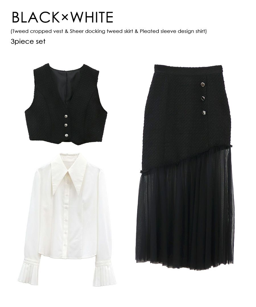 他の画像を見る 【X’MAS EDITION】 【SET】Tweed cropped vest & Sheer docking tweed skirt & Pleated sleeve design shirt 送料無料 2BUY 10%OFF 数量限定 定価 ¥ 19,690 → ¥ 16,000 税込 販売開始前です。 販売期間 2025/12/11 18:00 〜 2025/12/16 11:59 入荷リクエスト受付中 カートに入れる お気に入りに登録する