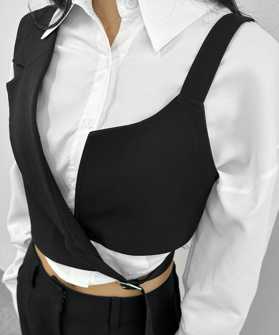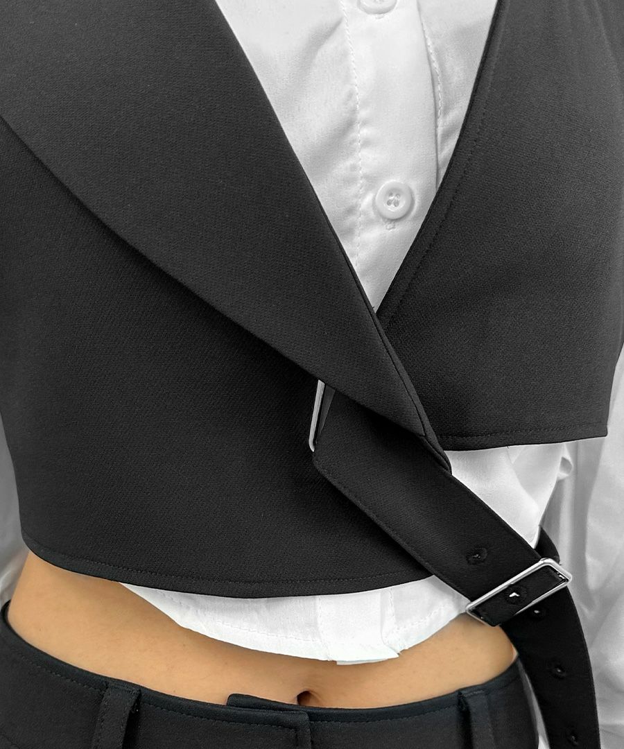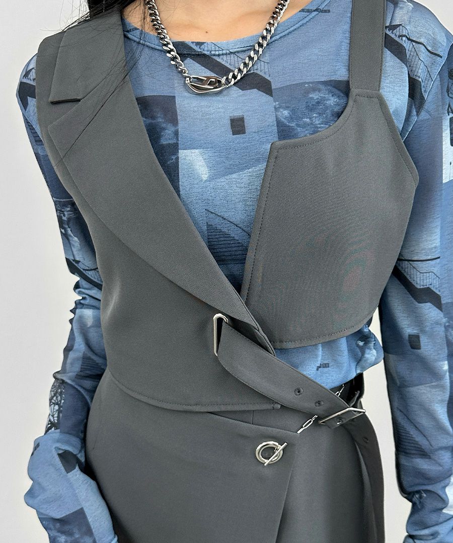 他の画像を見る 【20%OFF】 Asymmetric design vest bustier SALE ORIGINAL 定価 ¥ 5,500 → ¥ 4,400 税込 販売期間 2025/11/21 12:00 〜 2025/12/03 11:59 カートに入れる お気に入りに登録する