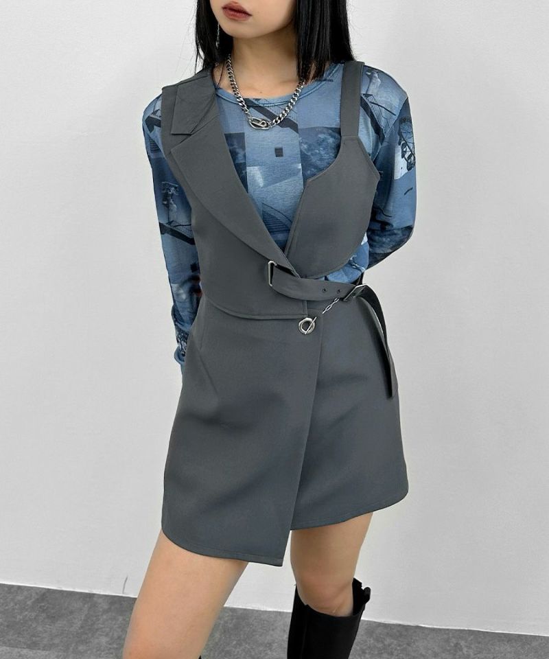 ・アシメデザインベストビスチェ(GRAY、FREEサイズ)