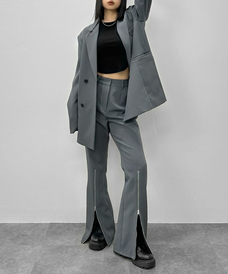 ・センタージップフレアパンツ(GRAY、FREEサイズ)