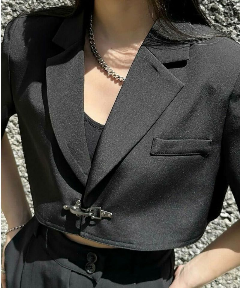 デザインフッククロップドジャケット:ポリエステル95%, ポリウレタン5%