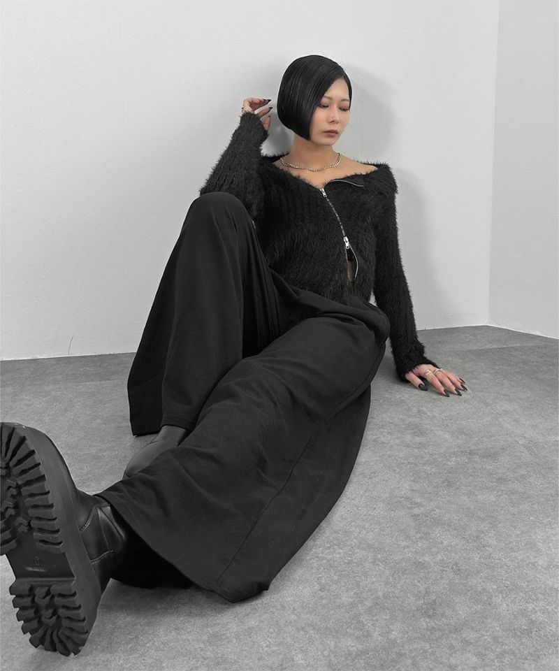 アシメジップオフショルシャギーニット