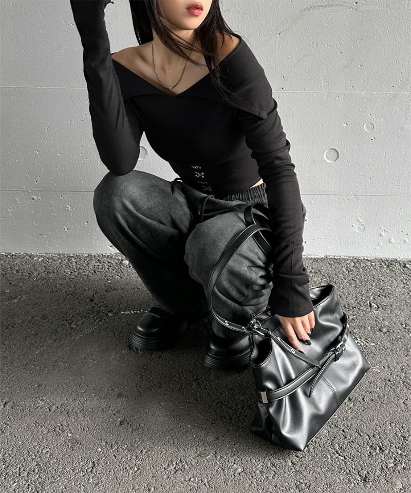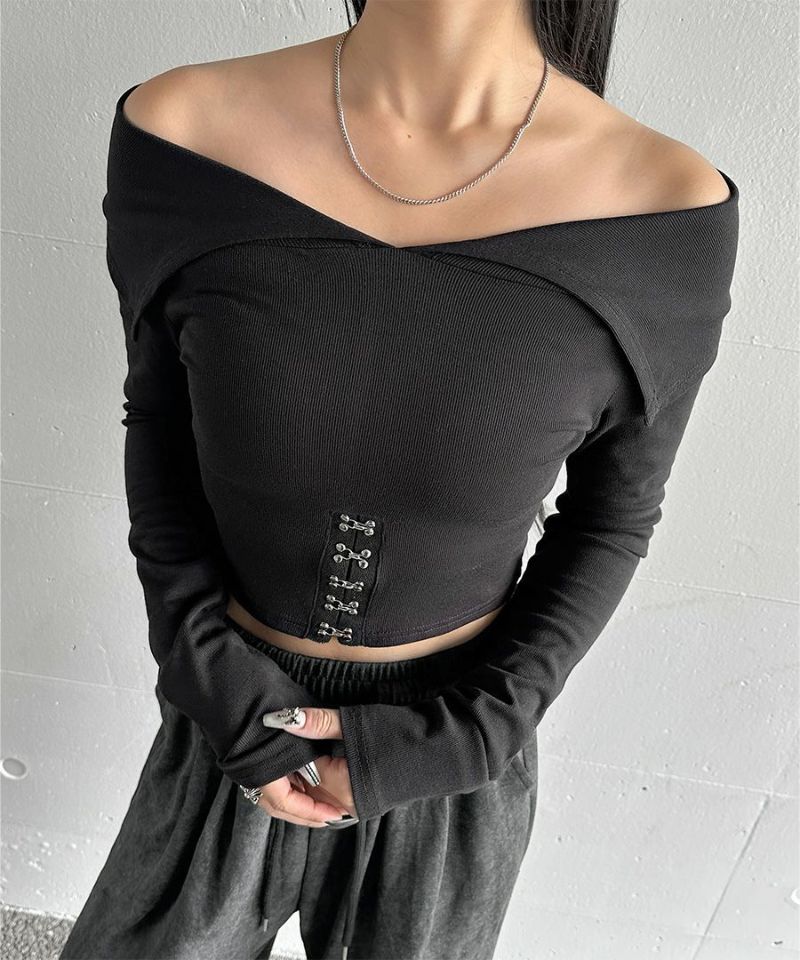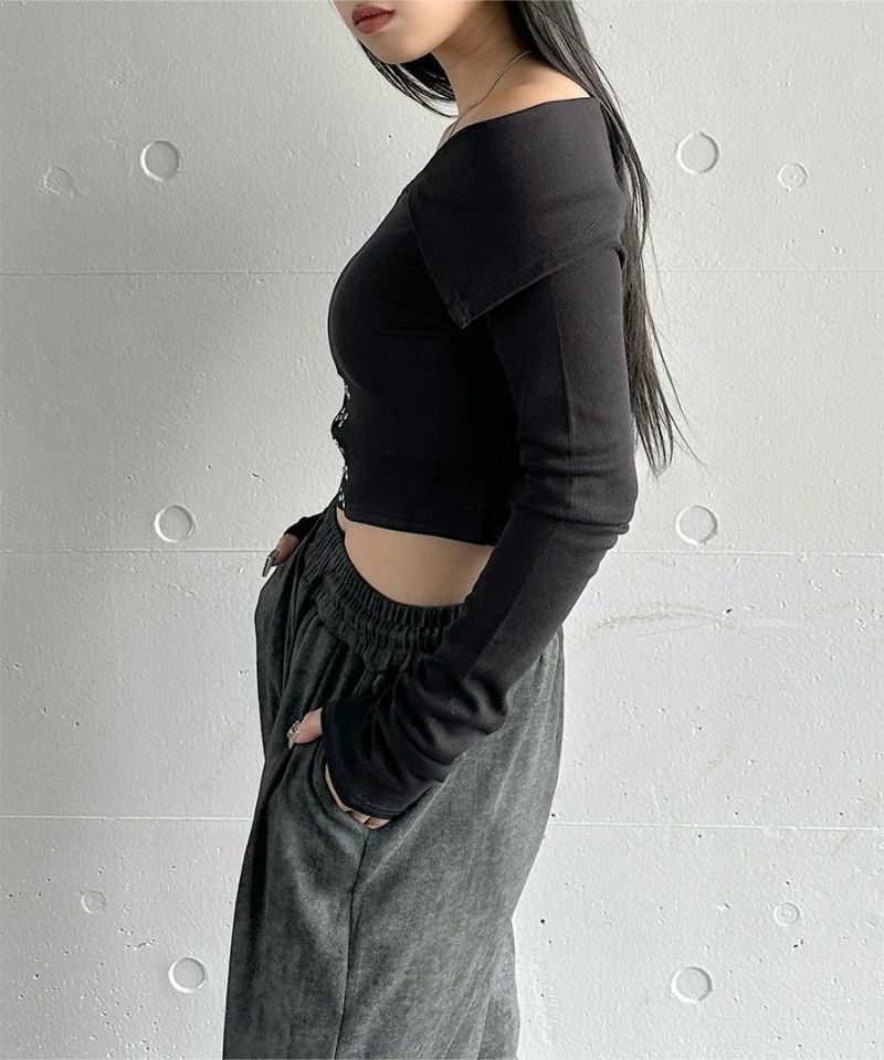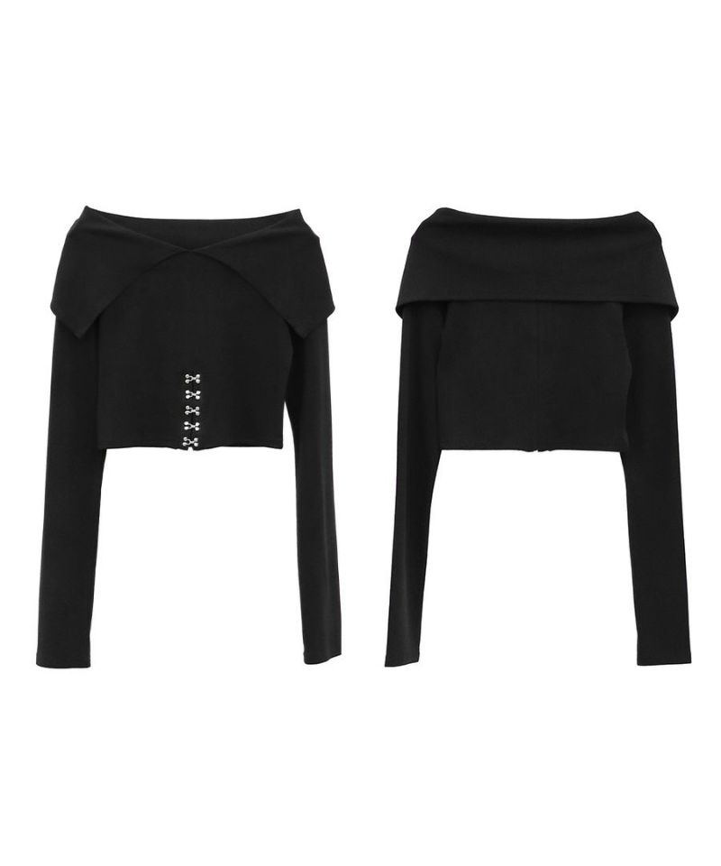 デコルテを美しく見せてくれる オフショル×フィットシルエットのトップス。 ホックデザインが視線を引き寄せ 立体的なアクセントになってくれます。 ホックは取り外し可能なので 気分に合わせて雰囲気を変えることも◎
