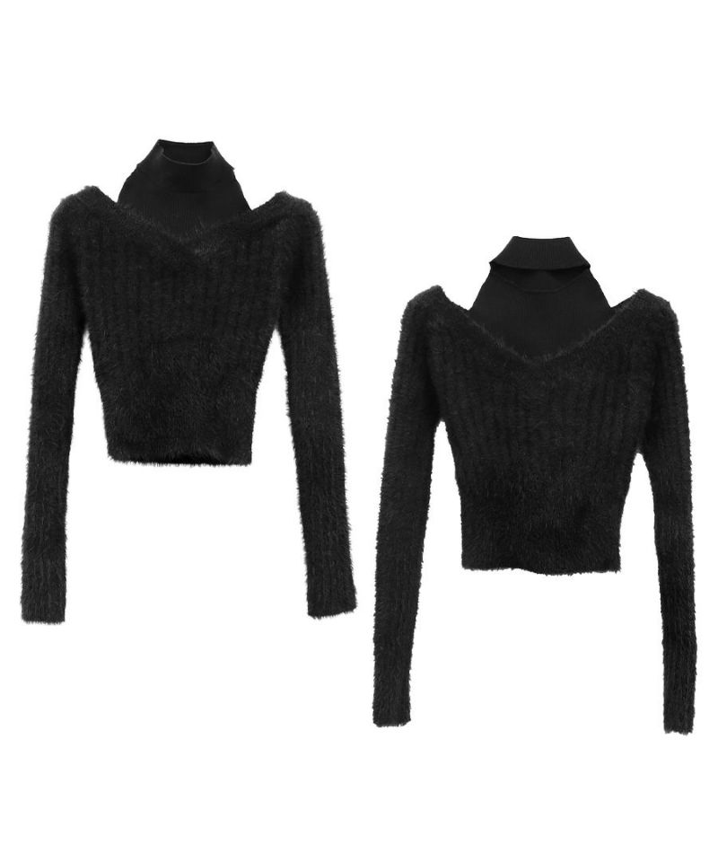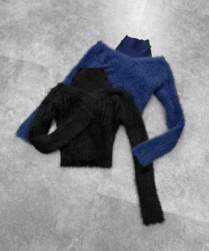 大人っぽさ溢れるBLACKと コーデのアクセントになるBLUEの2色展開。 柔らかな質感の毛足が長いシャギー素材は チクチクしないストレスフリーな着心地です。 細めのリブ編みは伸縮性抜群で 華奢なシルエットを演出してくれます。